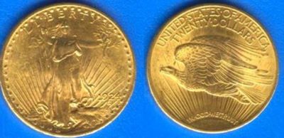 Descriere avers: Tânără despletită cu părul în vânt, uitându-se spre privitor, ține în mâna dreaptă o torță aprinsă (simbolul libertății) și în mâna stângă o ramură de măslin. În spatele ei sunt reprezentate razele soarelui. În dreptul piciorului drept apare clădirea Capitoliului iar în dreptul piciorului stâng ce se sprijină pe o stâncă ce are în față un ram de stejar, millesimul cu cifre arabe 1908. Dedesubt, numele machetatorului monogramat AG (August Saint Gaudens). Imaginea este înconjurată de un cerc format din 48 de stele cu 6 colțuri.