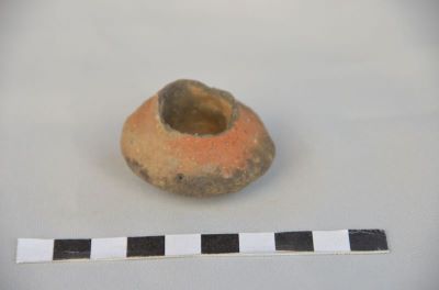 Descriere: Vas miniatural reprezentând o amfora pântecoasă, confecționat din lut cu pietricele. Lipsește buza.