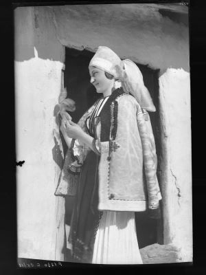 Descriere: Tânără fată din Poiana Sibiului îmbrăcată în port popular românesc de sărbătoare, de iarnă, cu pahiol pe cap și cojoc din blană, cu mâneci lungi, pe umeri; în colțul din partea stângă a clișeului, jos, mențiuni manuscrise cu numărul de inventar și locul topografic din depozit; în colțul din dreapta, sus, însemnare AGFA.