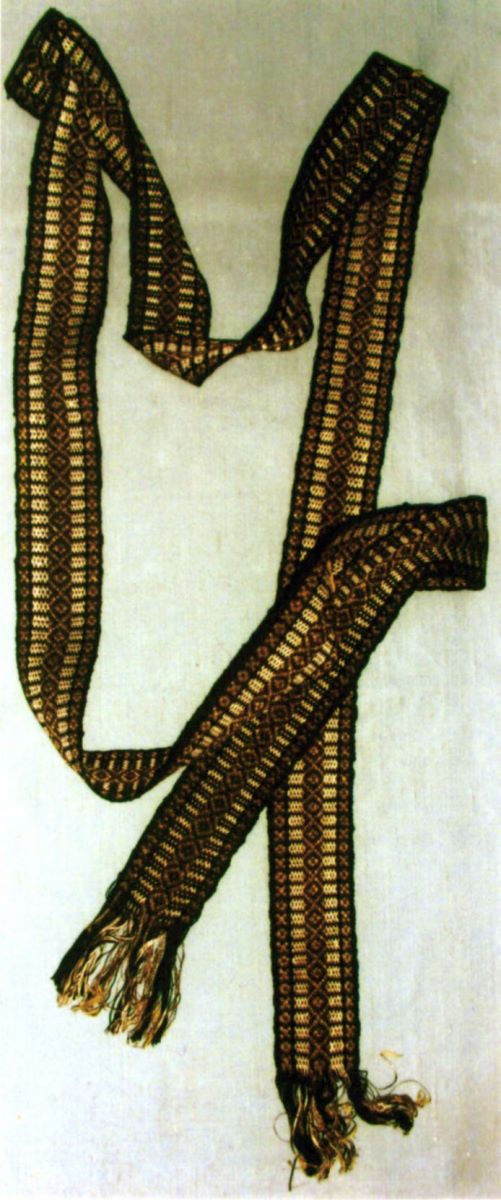 Material/Tehnică (text): bumbac; arnici; fir metalic; țesut în 2 ițe
