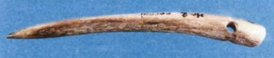 Material/Tehnică (text): os; cioplire; lustruire; perforare