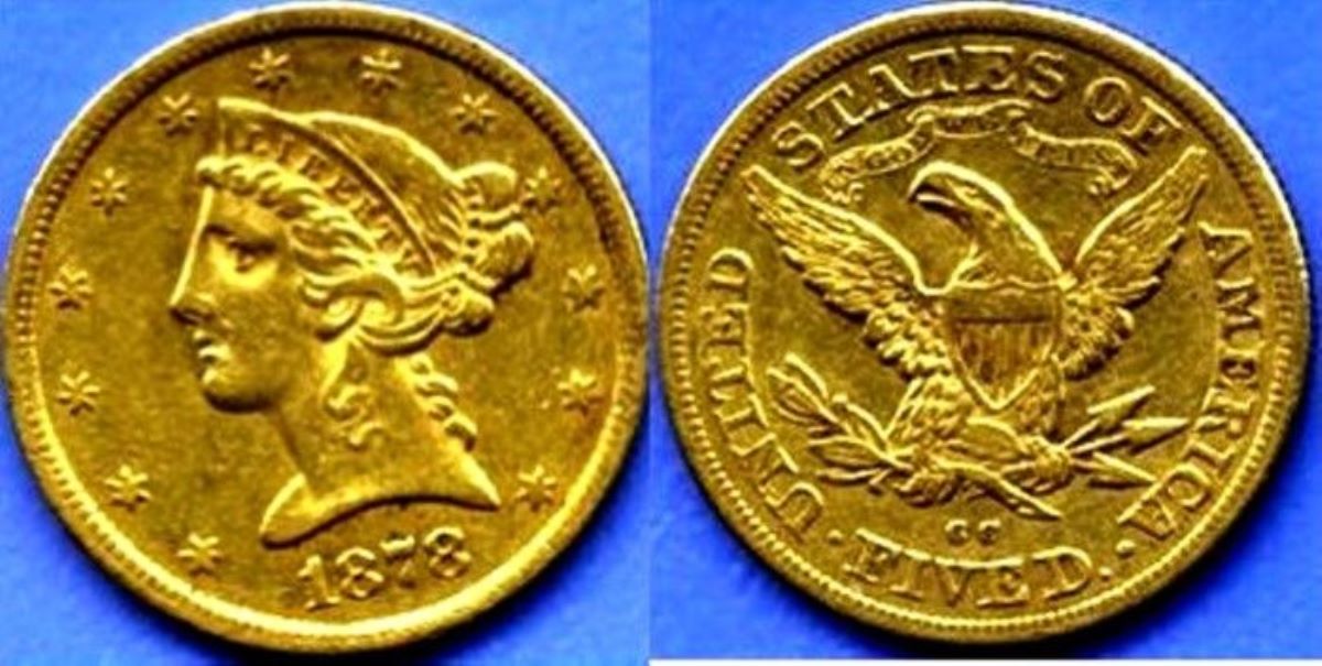 Descriere revers: Acvilă din față, cu aripile deschise, capul întors spre stânga, are în față scut cu 13 bare (barele reprezintă Statele care au format inițial Uniunea, heraldic roșii și albe) având deasupra un dreptunghi reprezentând congresul (heraldic de culoare albastră). Ține în gheare trei săgeți (forța militară) și în gheara stângă o ramură de măslin (pacea). Sub vultur sigla CC. Deasupra vulturului eșarfa pe care scrie IN GOD WE TRUST (moto). Totul în cerc perlat. Zgârieturi pe spatele gâtului și deasupra vârfurilor săgeților