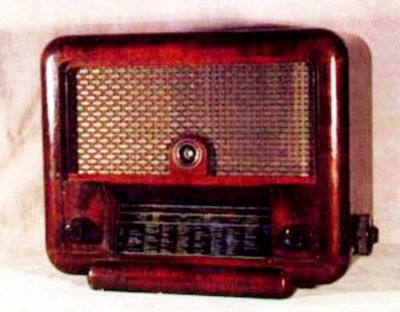 Descriere: Aparatul de culoare maro, furniruit, cu 4 lungimi de undă, cu 4+1 lămpi: CH 11, EBF 11, EL 11, AZ 11, EM 11 ochi magic, alimentat la 110/240 V, cu trei butoane: dreapta lateral - comutator tensiune (economizor pentru reducerea consumului), fincționează prin apăsare, față dreapta - scala, stânga volum.