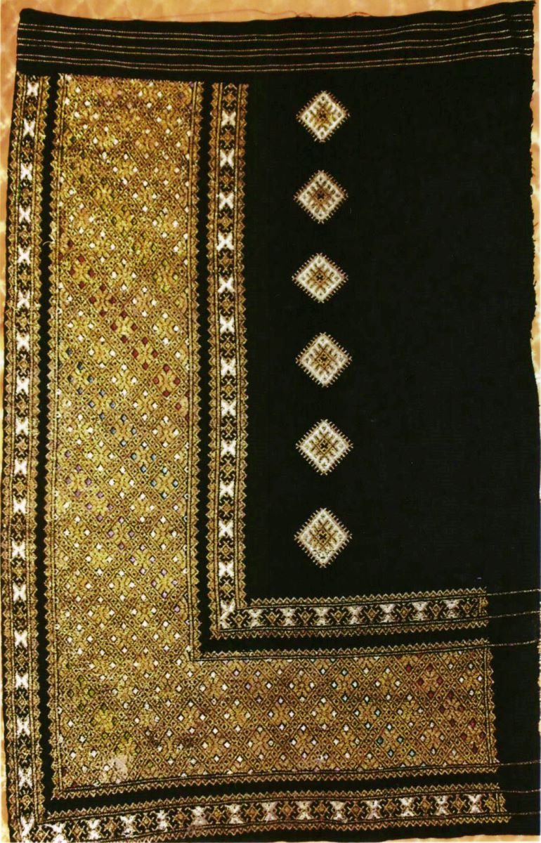 Descriere: Formă dreptunghiulară, dintr-o singură bucată, ornamentată cu motive geometrice dispuse sub forma unui registru lat, amplasat la unul din capete și în partea inferioară, mărginit de un registru îngust. Cele două registre prezintă, pe margine, vergi cu colț. Mijlocul este ornamentat cu un registru îngust și un șir de șase romburi. Motive geometrice: romb, cruce în X, zig-zag, triunghi. La celălalt capăt, grupuri de vărguțe galbene. Pe trei laturi, este tivită. Cromatică: negru, galben, albastru, liliachiu, roz, roșu, verde, alb.