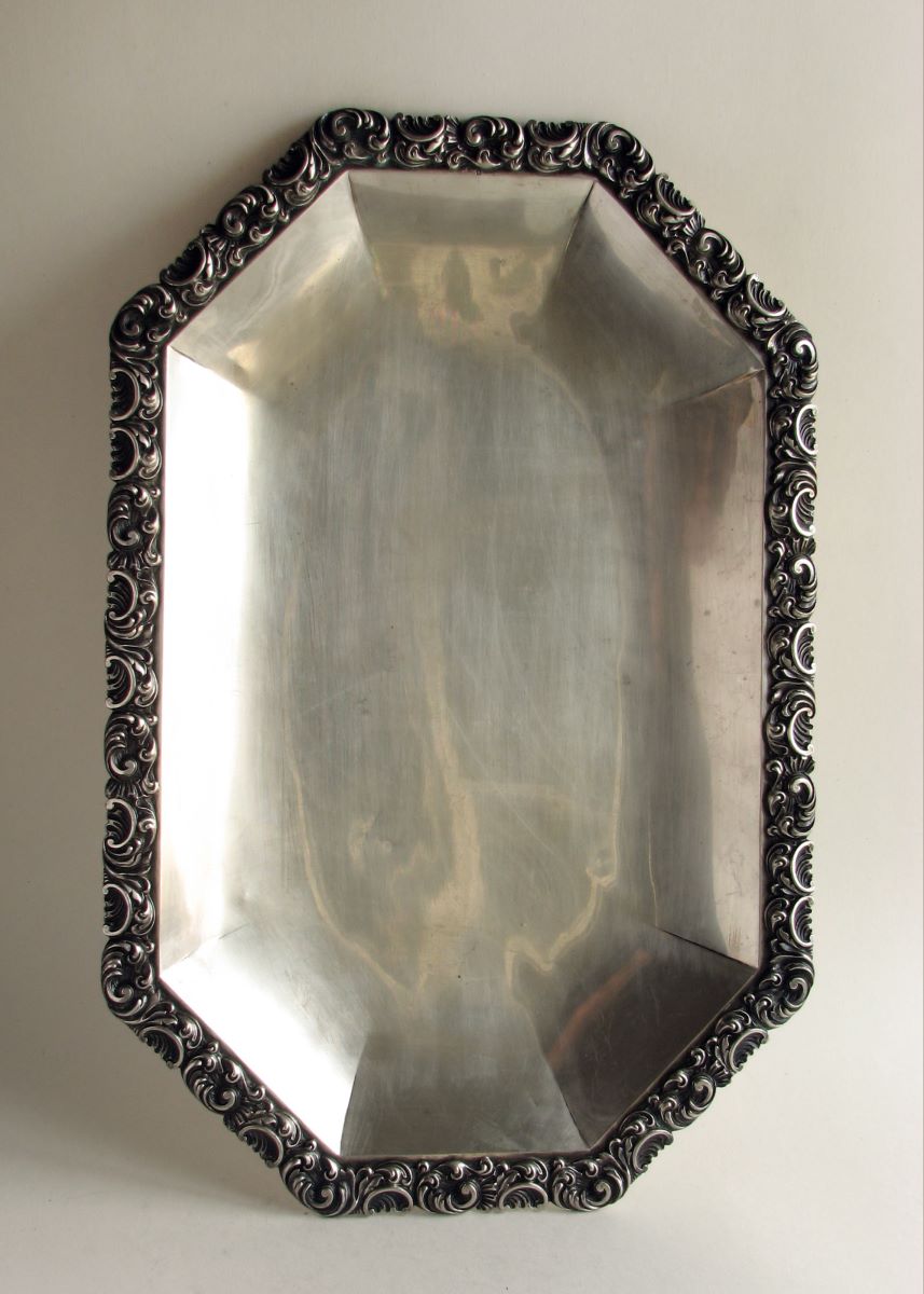 Descriere: Formă octogonală, adâncită înspre interior, profilată cu o bordură de motive vegetale.