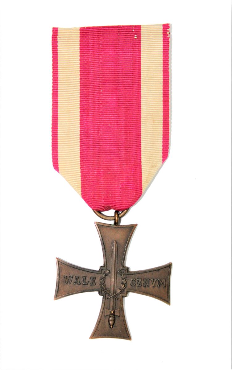 Descriere avers: Crucea Pentru Vitejie este una din primele decorații de război poloneze fiind conferită pentru bavură pe câmpul de luptă din anul 1920, în timpul luptelor pentru constituirea statului polonez. Aceasta are forma unei cruci malteze cu brațe egale și cu un scut în centru. Pe avers avem în centru vulturul polonez încoronat iar pe brațe inscripția NA POLU CHWAŁY (Pe Câmpul de Glorie) și anul 1920. Pe revers avem o spadă cu vârful în sus ce trece printr-o cunună așezată în centrul crucii iar pe brațele laterale putem observa inscripția WALE CZNYM (Celui viteaz). Panglica este culoare roșu ciclamen cu două liziere albe laterale.
