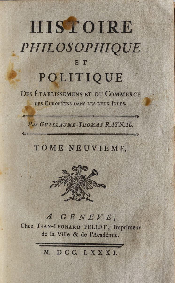 Titlu: Histoire philosophique et politique des établissemens et du commerce des Européens dans les deux Indes