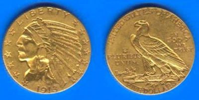 Descriere avers: Cap de indian (bătrân) spre stânga, cu coroană de pene pe cap, pe care scrie pe marginea de sus LIBERTY, având la dreapta 6 stele în 5 colțuri iar la stânga 7 stele (statele care au format uniunea). Sub gât anul de emisie 1913. Zgârietură în dreptul bărbiei