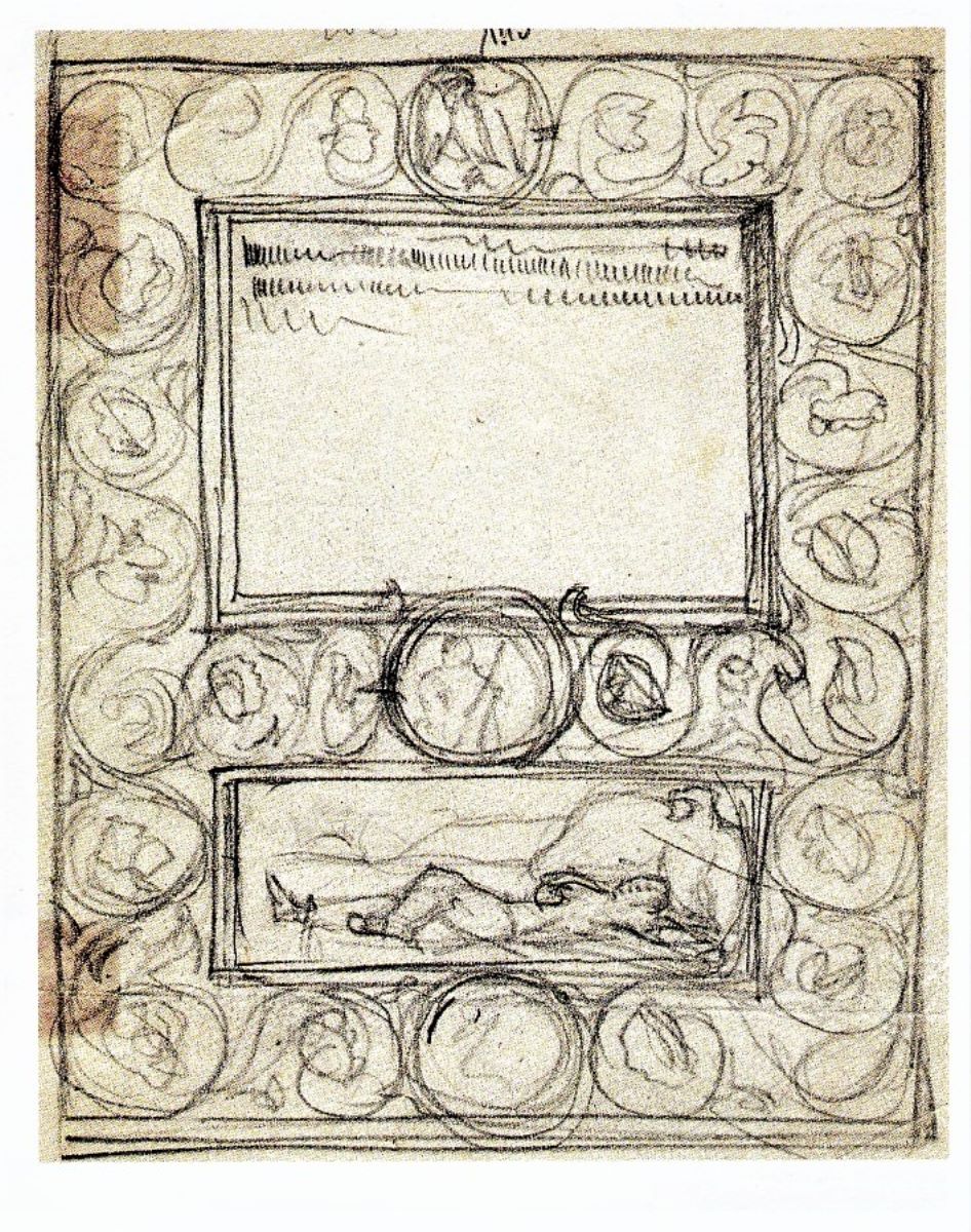 Descriere: Studiu de plachetă cu rost comemorativ, comandată probabil după primul Război Mondial. Compoziție alcătuită din două registre paralele; sus un cartuș destinat textului și jos un al doilea cu o scenă în care este figurat un soldat rănit întins pe câmpul de luptă, străjuit de un vultur. De jur împrejur, centru sus și la mijloc, medalioane decorative inspirate de ornamentica brâncovenească. Desen esențializat, cu duct energic și sinuos.
