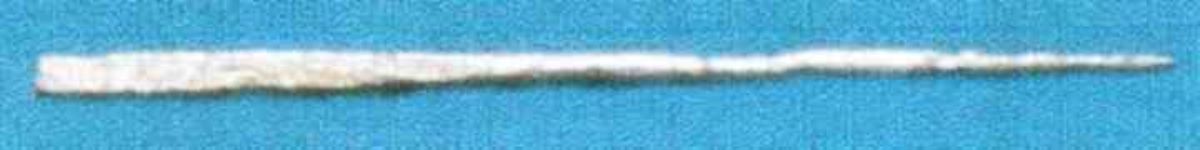 Descriere: Ac de cupru, realizat prin batere. Are o formă aproximativ conică în jumătatea dinspre vârf, iar spre bază are formă rectangulară.