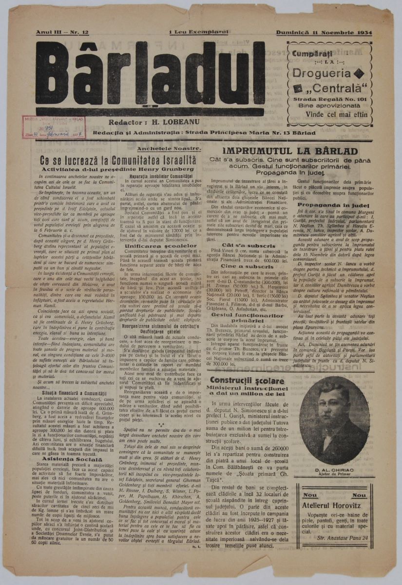 Titlu: Bârladul, an III, nr. 12, 11 noiembrie 1934