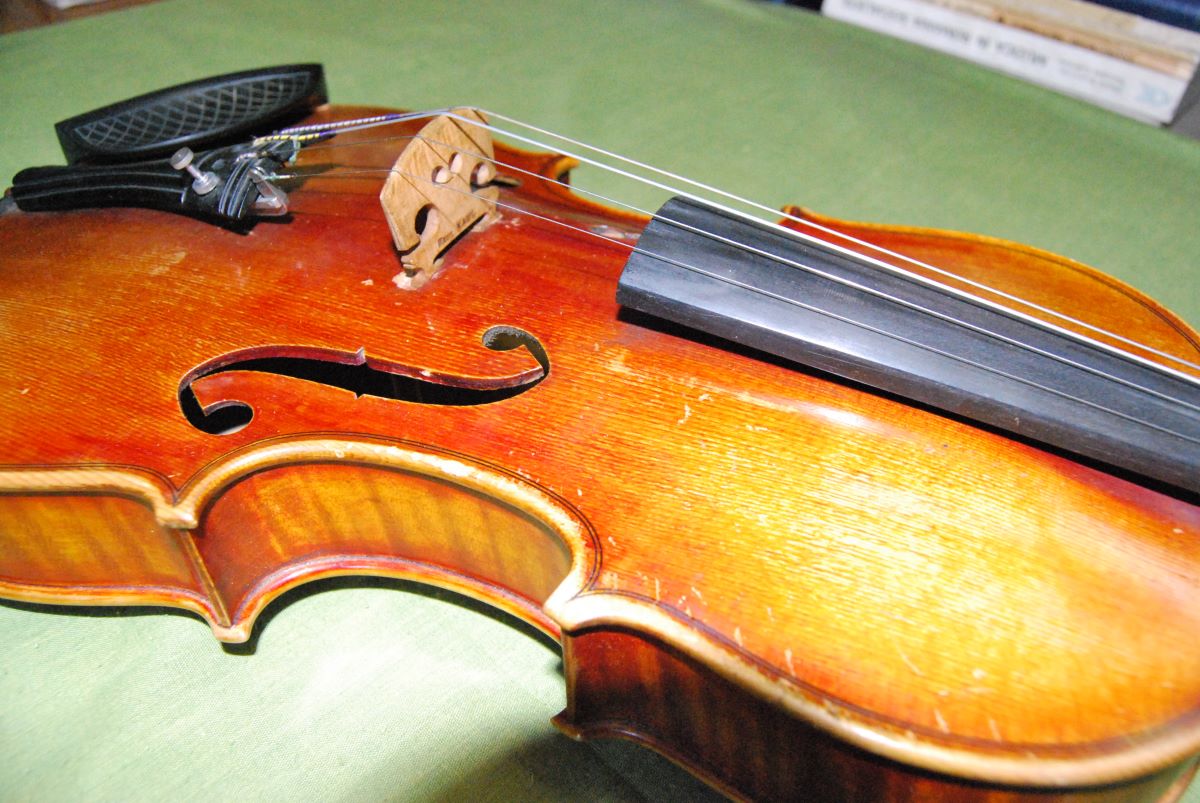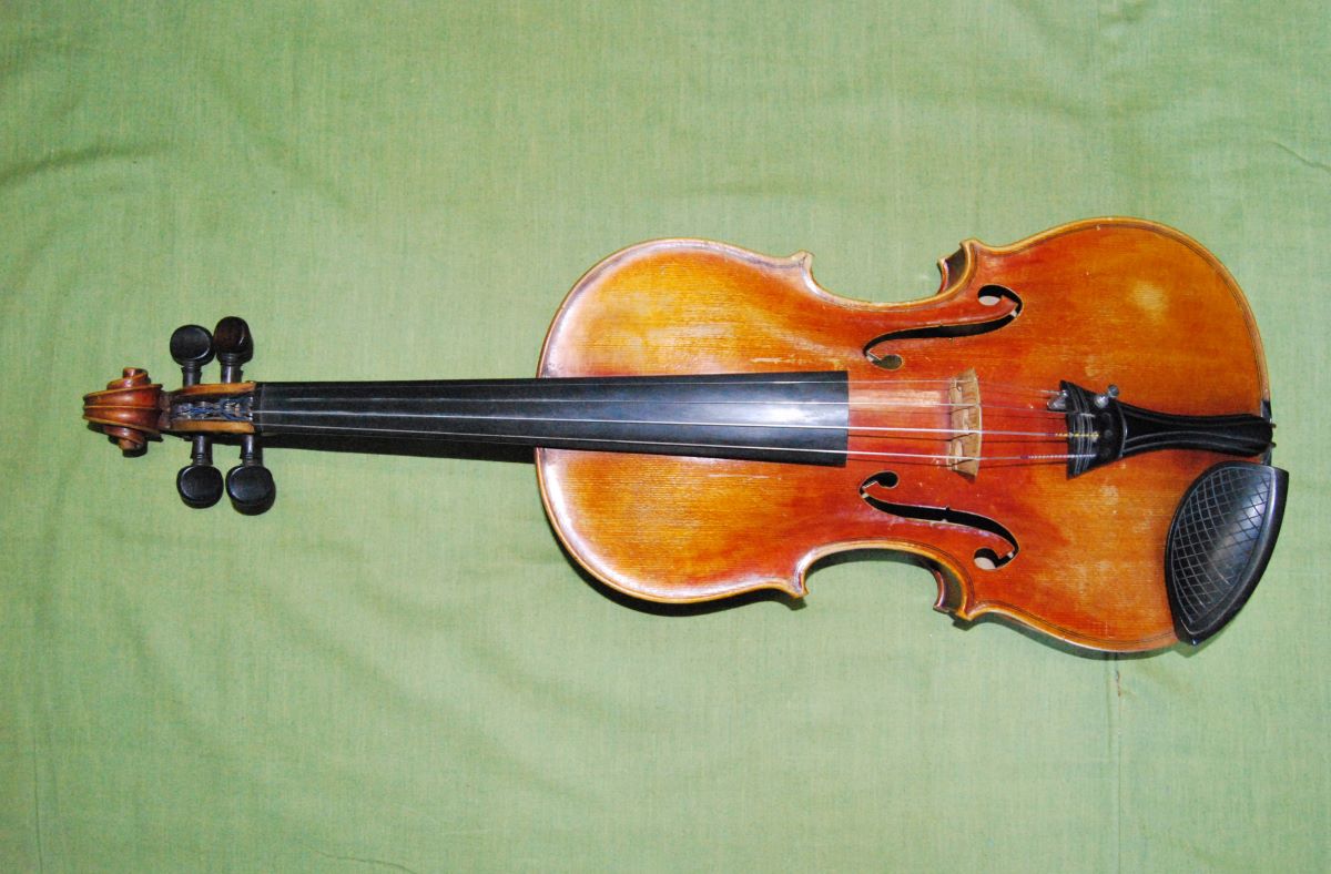 Material/Tehnică (text): Vioara este construită din lemn de molid și paltin, cu elemente din abanos și din metal. Tehnica folosită în realizarea viorii include o serie de etape, precum: sculptare, traforare, montare, rașchetare, șlefuire, lipire, lăcuire, finisare.