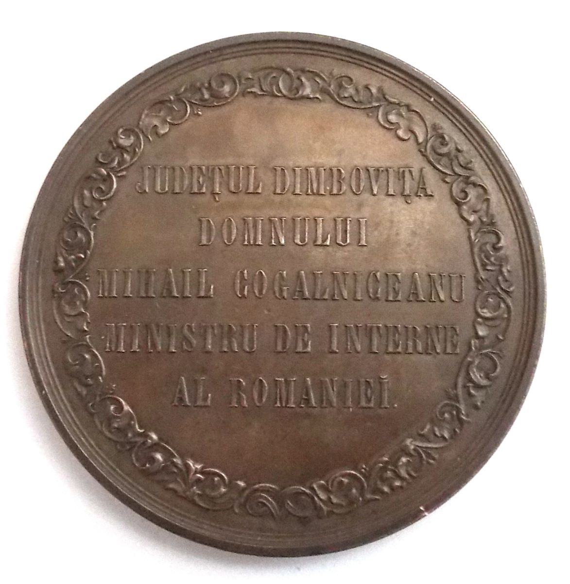 Legendă avers: JUDEȚUL DÎMBOVIȚA/ DOMNULUI/ MIHAIL COGĂLNICEANU/ MINISTRU DE INTERNE/ AL ROMÂNIEI