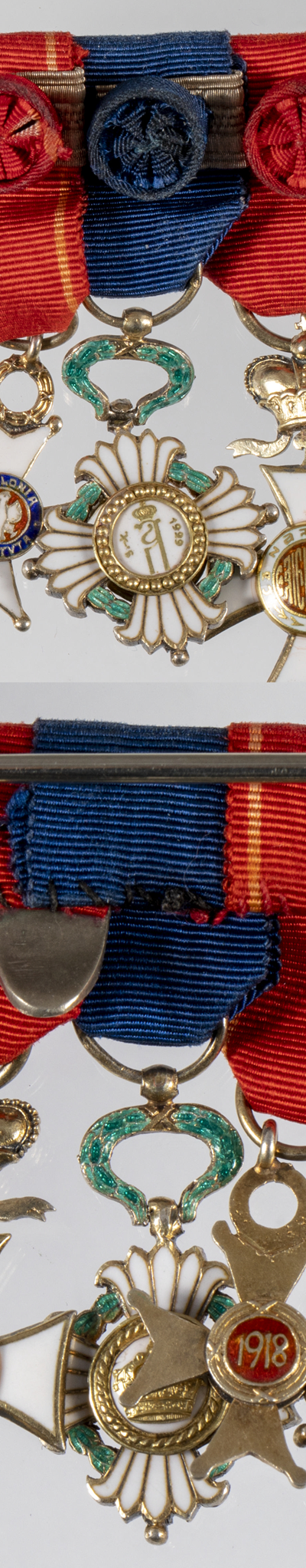 Descriere revers: Reversul este similar cu aversul. Pe medalionul central apare data proclamării regatului și monograma încoronată a regelui Alexandru I, iar pe banda aurie din jurul medalionului este un cerc perlat.