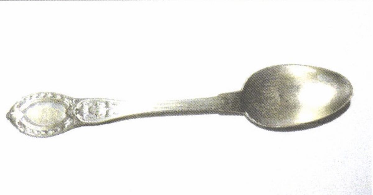 Descriere: Lingura are un mâner cu decor floral, la capătul căruia, pe verso, se află reprezentat într-un medalion stema Principatelor Unite. Face parte dintr-un set de tacâmuri din argint și as al familiei domnitoare Cuza.