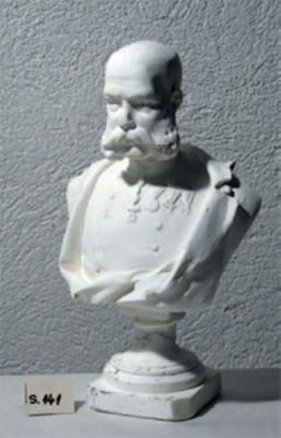 Descriere: Lucrare inspirată de bustul realizat de Johannes Benk, aflat la Heeresgeschichtliches Museum din Viena, atribuită lui G. Vanni și produsă în atelierul de copii în ghips al familiei acestuia de la Viena, din care de altfel provin și alte piese din colecția Muzeului Național Brukenthal.De lucrarea realizată de J. Benk se deosebește prin absența eșarfei ordinului militar „Maria Theresia” și a celor 4 ordine principale. Deasupra soclului, inscriția incizată: FRANZ JOSEF I (cu litere capitale, pictate cu brun). Lucrarea, care trebuie considerată un produs de artizanat, datează tot din perioada 1873-1898, deoarece nici în acest caz împăratul nu poartă medalia jubiliară din 1898.