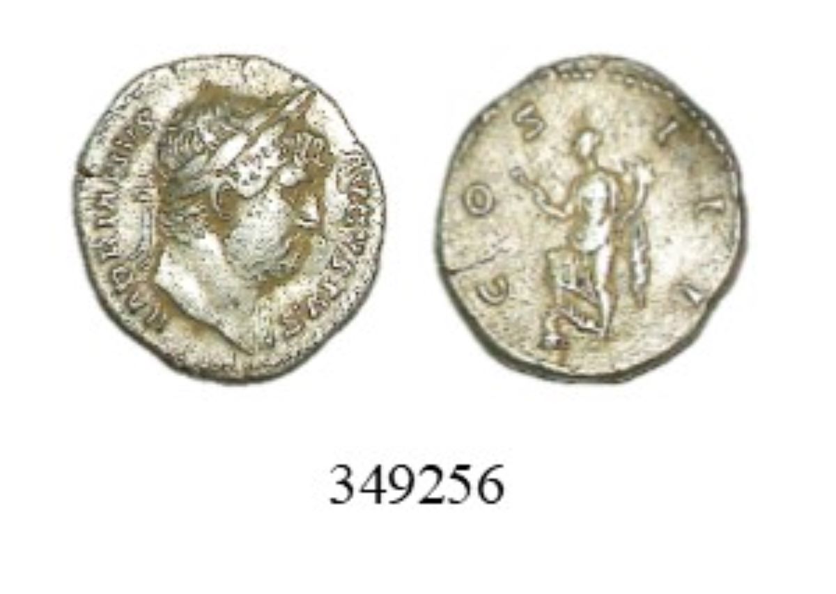 Descriere revers: Abundantia în picioare spre stânga, cu piciorul drept pe modius, ținând cârlig și cornucopiae.