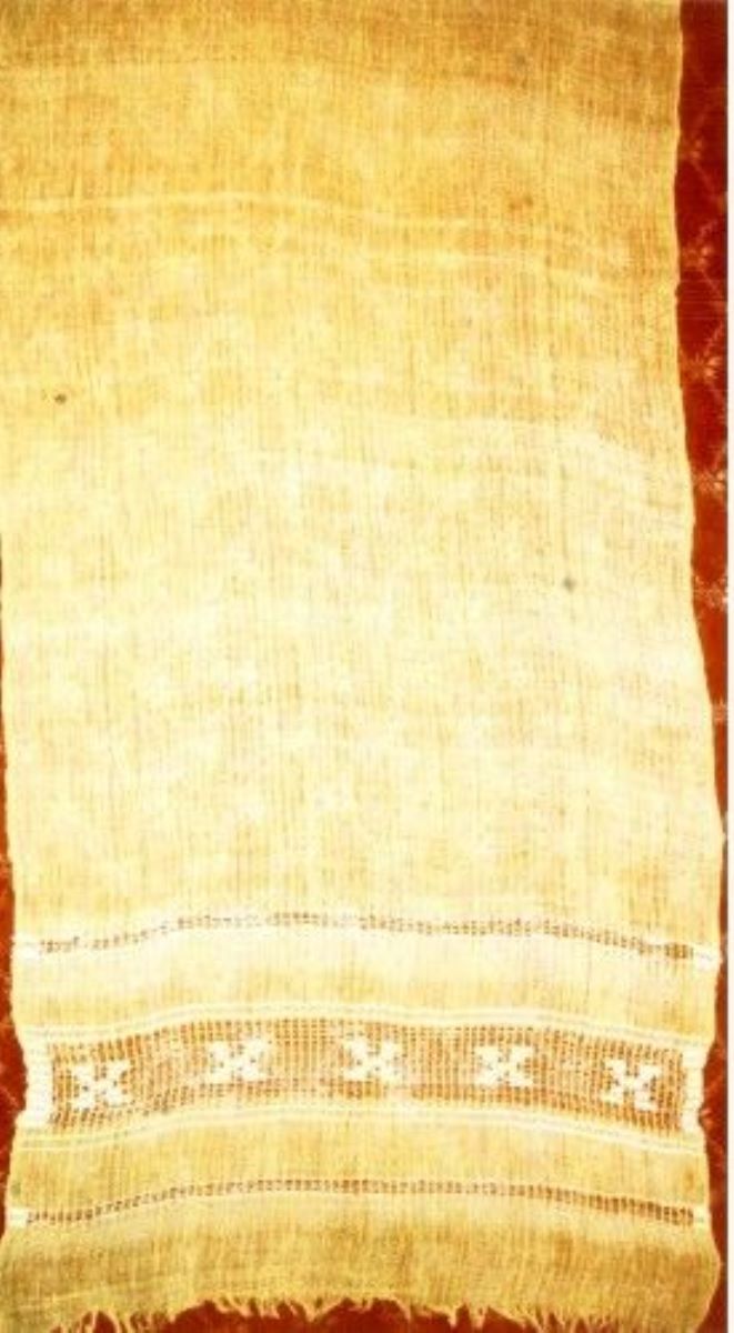 Material/Tehnică (text): borangic; mătase; țesut în 2 ițe; ales cu găurele
