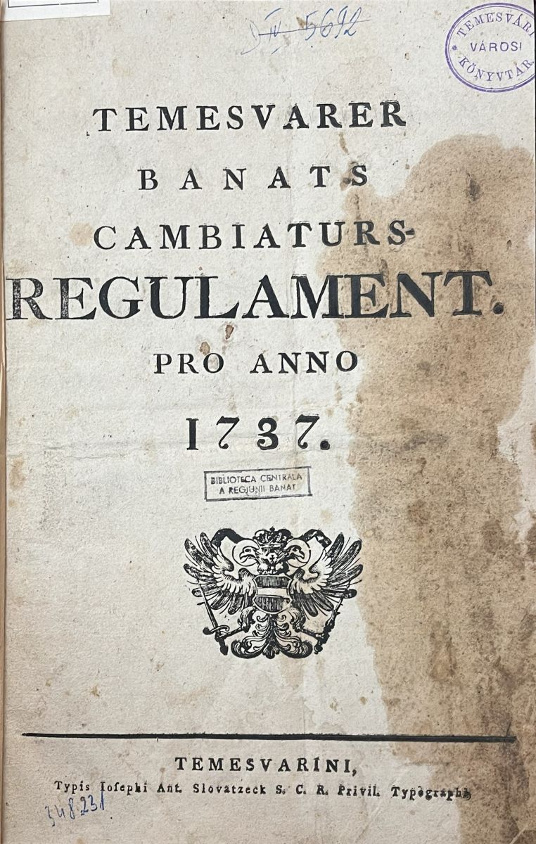 Titlu: Temesvarer Banats Cambiaturs-Regulament pro anno 1737