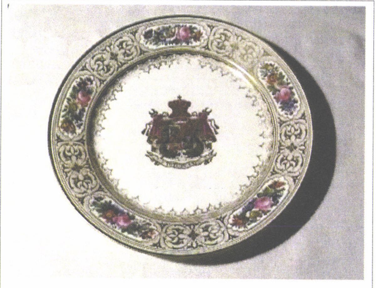 Descriere: Farfuria face parte dintr-un serviciu de masă compus din peste 100 de piese comandate la manufacturile regale din Sèvres de către familia domnitoare Cuza. Serviciul urma să fie folosit în palatul domnesc din Cotroceni. Farfuria este întinsă, circulară și pictată pe margini cu cinci medalioane florale care alternează cu arabescuri aurii. Reprezintă modelul decorativ în stil Louis-Philippe, creat în anul 1844 de către ceramistul Charles Antoine Didier, fiul. Farfuria este decorată central cu stema Principatelor Unite și deviza unionistă „Toți pentru Unu”. Stema și motivele florale se caracterizează printr-o vie policromie: galben, nuanțe de roșu, roz, verde și albastru. Pe reversul ei apar două mărci în câmp circular, „Chateaux de Trianon” (culoare roșu-carmin) și „Sevres 1846” (cu albastru). De asemenea se remarcă cartelul care conține, în cifre latine, datele dublei alegeri ale lui Alexandru Ioan Cuza ca principe al Țării Românești.