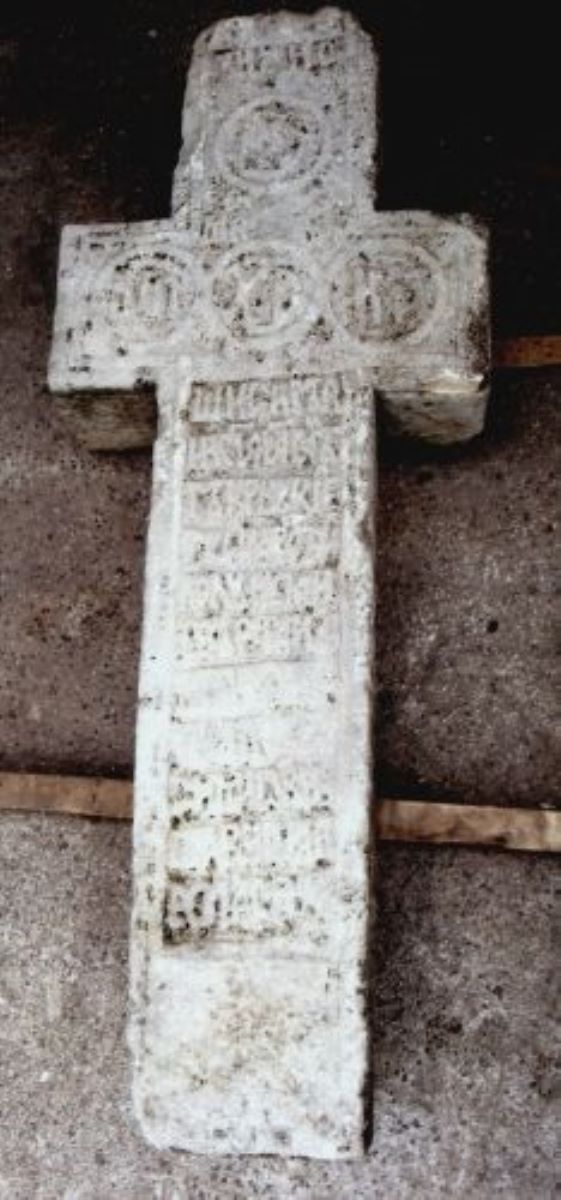 Descriere: Monument de cult cu rol de hotărnicie, pomenire și pază. Are inscripția săpată în piatră, pe părțile: frontală, laterală stânga, laterală dreapta și pe brațul orizontal. Este decorată cu motive iconografice, săpate în piatră. Este realizată din piatră de Albești-Muscel.