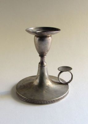Descriere: Formă simplă, cu talpa circulară - ornamentată cu un șir de ove spiralate -, prevăzută cu un inel de susținere.