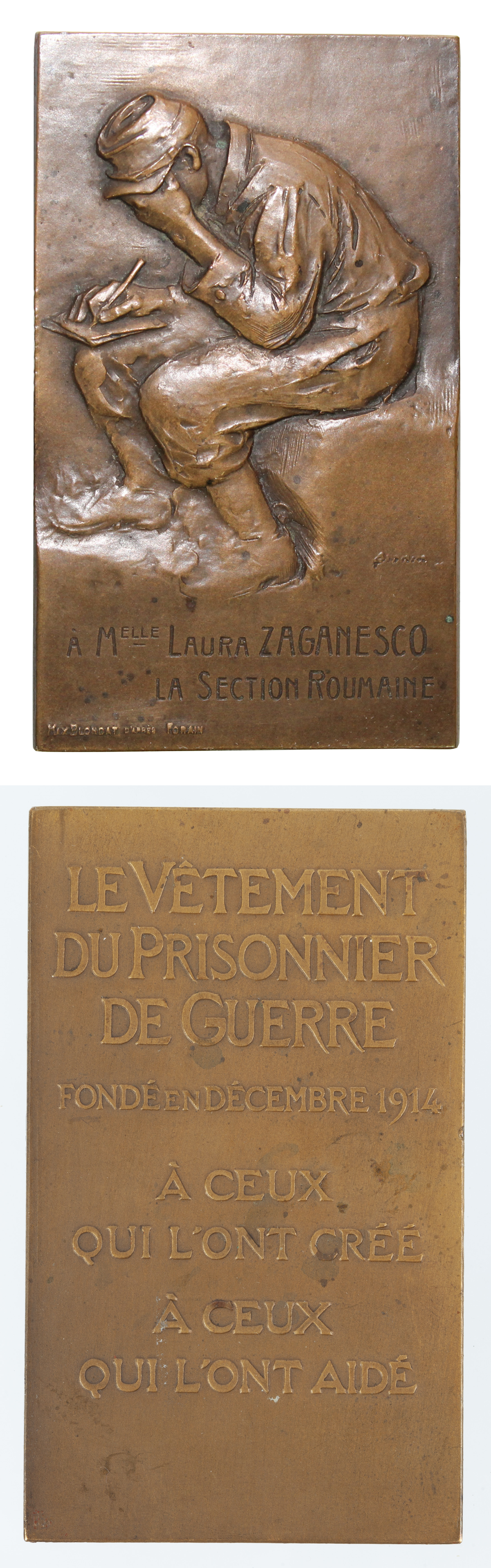 Legendă avers: À M-ELLE LAURA ZAGANESCO / LA SECTION ROUMAINE / MAX BLONDAT D`APRES FORAIN