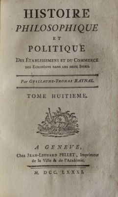 Titlu: Histoire philosophique et politique des établissemens et du commerce des Européens dans les deux Indes
