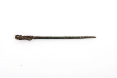 Descriere: Ac din fier perforat. Descoperit în mormântul 3 de la Țîfești, com. Iana, jud. Vaslui.