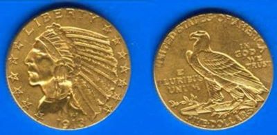 Descriere avers: Cap de căpetenie indiană (bătrân) spre stânga, cu coroană din pene de vultur pe cap. În legendă sunt intercalate două serii de stele (6 și 7) reprezentând statele care au format inițial Uniunea. Sub gât millesimul 1913. Zgârieturi pe obraz și în dreptul frunții.