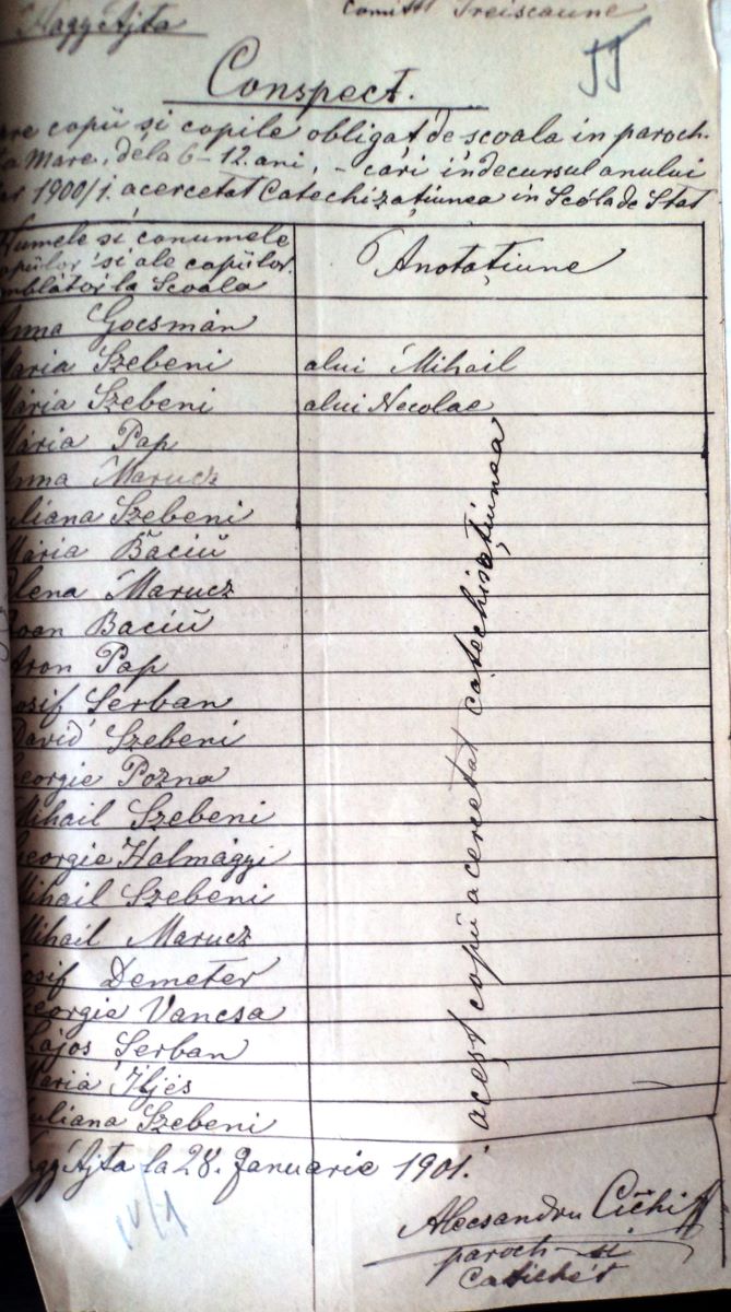 Titlu: Conspect referitor la elevii ortodocși, cu vârsta cuprinsă între 6-12, înscriși la școala de stat din Aita Mare și care, în cursul anului școlar 1900/1901, au frecventat orele de religie