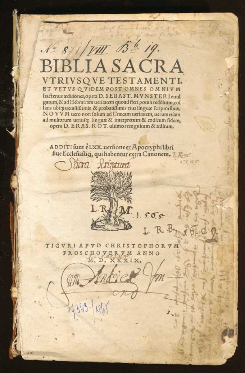 Titlu: Biblia Sacra // Utriusque Testamenti, // et Vetus Qvidem post omnes omnium // Hactenus Aeditiones, Opera D. Sebast. Muntzeri Euul [...]