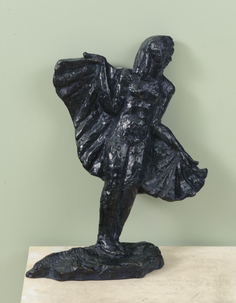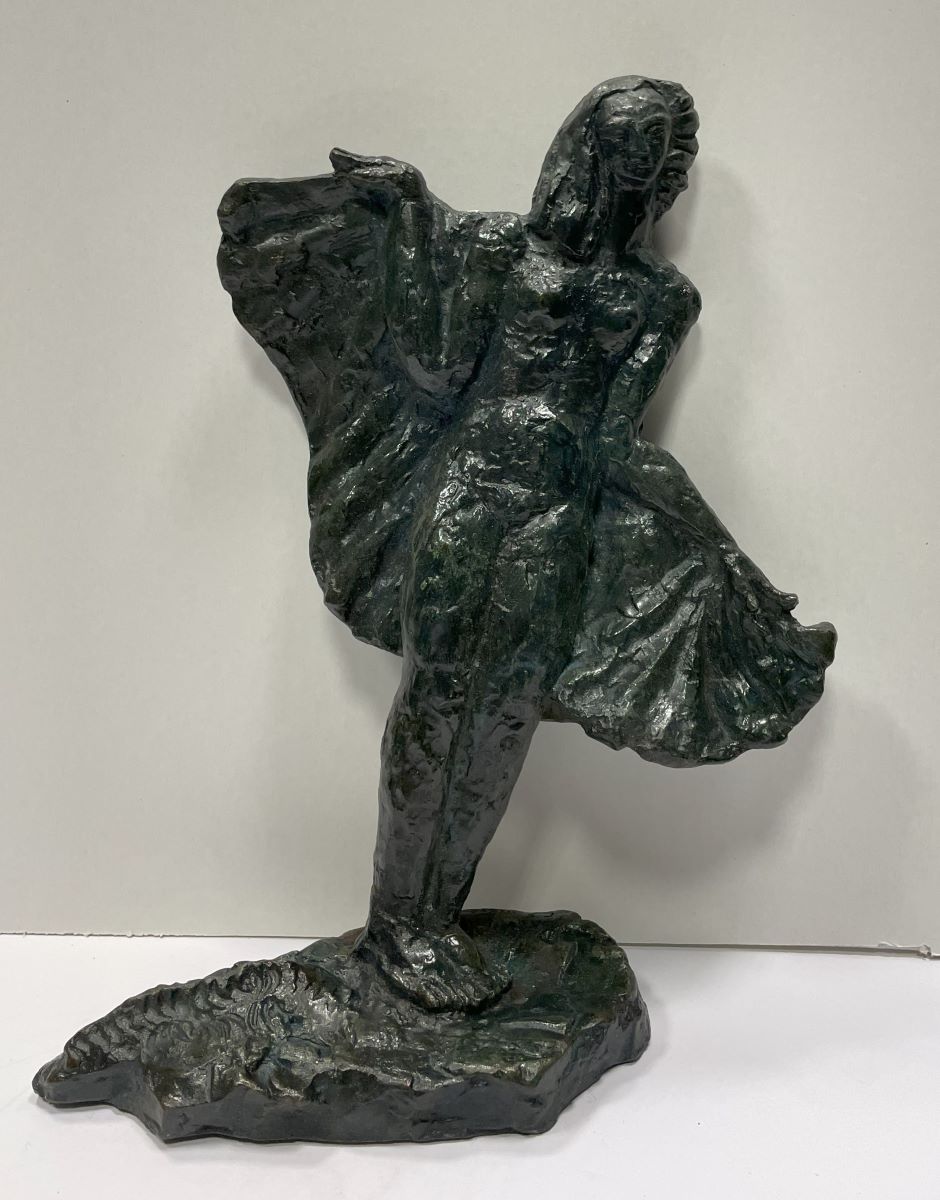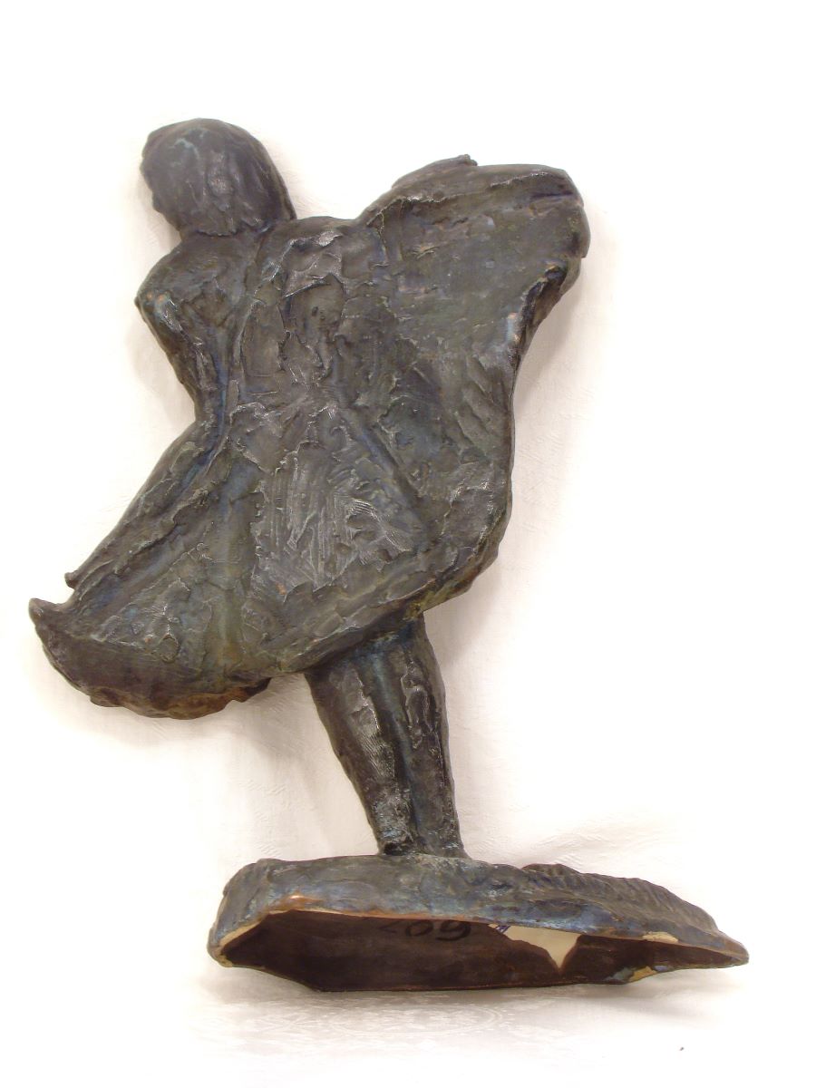 Descriere: Personaj feminin redat nud, dansând, ținând cu mâinile un drapaj desfăcut lateral ca niște aripi, care acoperă spatele. Are corpul înclinat spre stânga sa, iar capul spre dreapta, remarcându-se astfel un echilibru, atât prin construcția și jocul volumelor, cât și prin modelajul vibrant, care arată o interpretare de mare calitate artistică. Semnat spate, pe plintă: Celine Emilian.