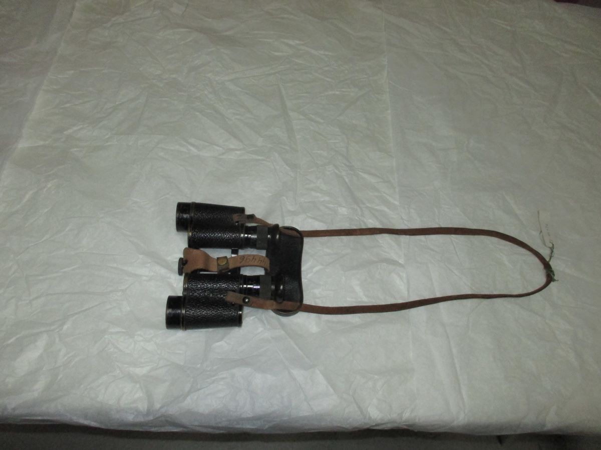 Descriere: Binoclul este brunat și este prevăzut cu o curelușă de piele pentru a putea fi suspendat de gât. Pe această curelușă culisează capacul din piele pentru protecția vizoarelor. Binoclul este așezat într-o cutie de piele naturală, prevăzută cu dispozitiv de închidere și inel de piele, la spate, pentru a-l putea suspenda de centură. Inscripții: CP GOERZ Berlin 6 x 30 Marinetrieper.
