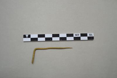 Descriere: Ac de cusut cu urechea îngustă. Îndoit. Rupt la capăt.