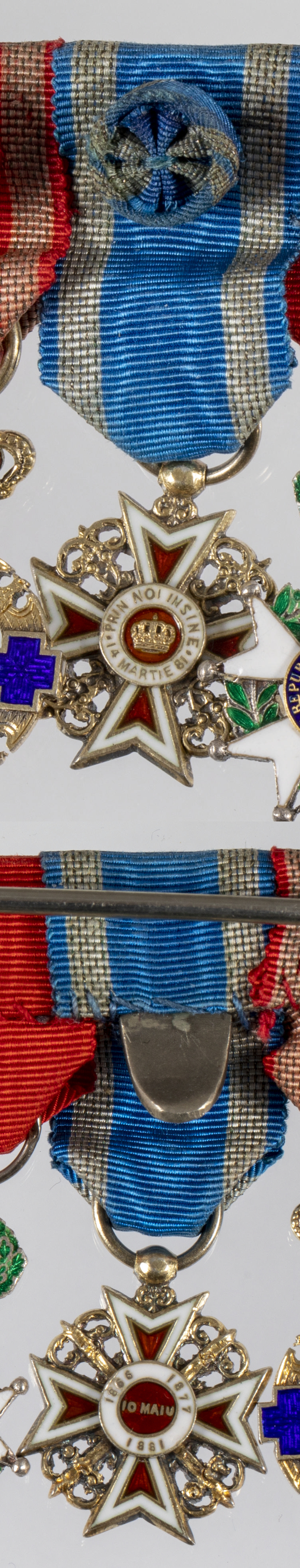 Descriere revers: Medalionul central emailat roșu pe care este reprezentată data proclamării regatului, este încojurată de o banda, emailată alb, pe care apar cei trei ani.