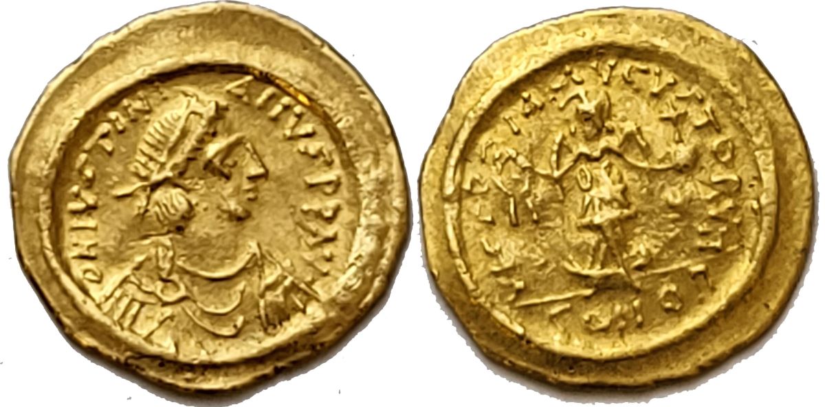 Legendă avers: DN IVSTINI - ANVS PP AVG