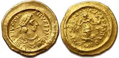 Descriere revers: Victorie mergând spre dreapta, cu glob cruciger în mâna stângă și cunună în mâna dreaptă