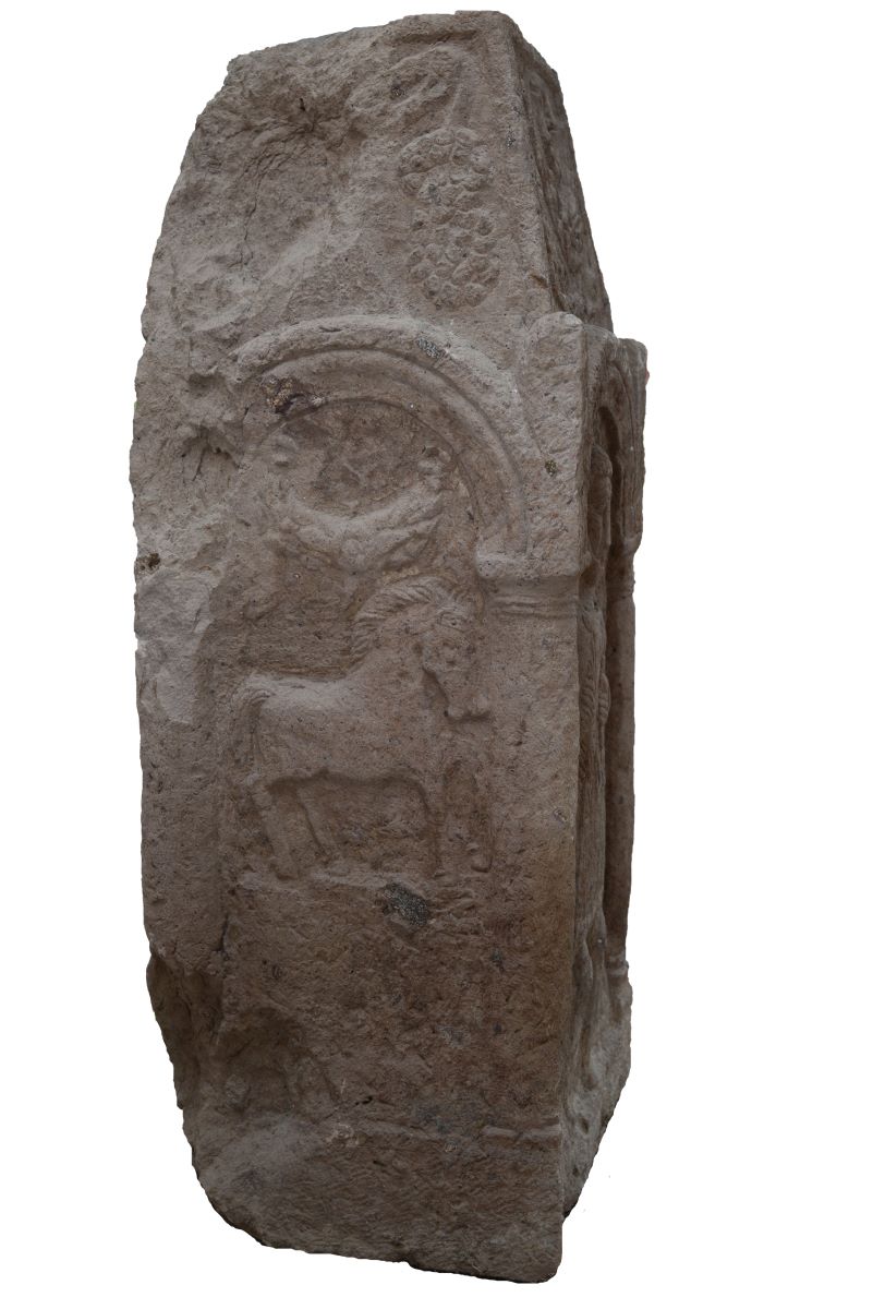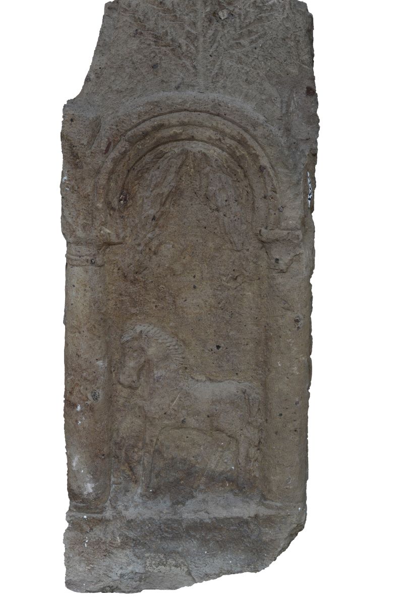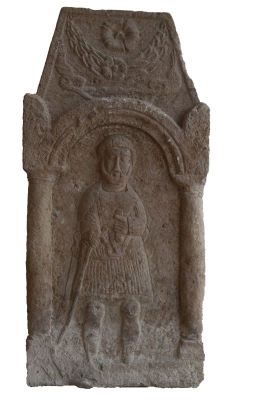 Descriere: Pilastrul este decorat pe trei fețe, cea de-a patra fiind doar finisată. În partea centrală este redat un personaj masculin, defunctul, îmbrăcat în tunica peste care este așezată o mantie prinsă pe umărul drept cu o fibulă circulară. Despre statutul său militar vorbesc spatha, prinsă pe șoldul drept, și vergeaua din mâna dreaptă. În palma stângă, ridicată la piept, strânge volumen-ul. Pe celelalte două fețe ale pilastrului, secundare, sunt reprezentați doi cai, iar în registrele iconografice superioare sunt figurate motive funerare consacrate: rozetele, ghirlanda și delfinii, palmierul și vița de vie. Acest tip de monument funerar, pilastrul, altar în formă de aedicula, care face corp comun cu trunchiul de piramidă din partea superioară, este un produs tipic centrului de pietrărie de la Micia .