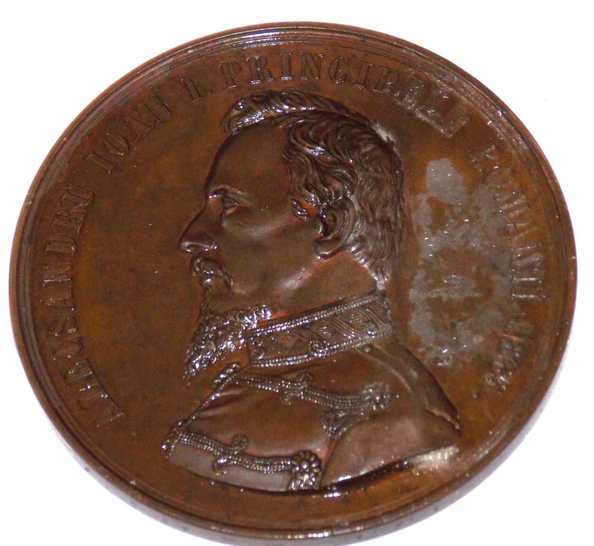 Descriere avers: Central, bustul domnitorului Alexandru Ioan Cuza, în uniformă de colonel, spre stânga; sub umăr, numele gravorului: A. PITTNER