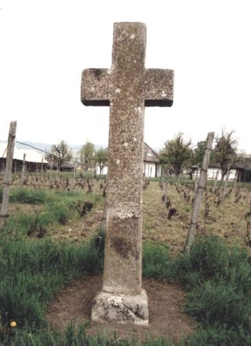 Descriere: Monument de cult, cu rol de hotărnicie, pomenire și pază realizat din piatră. Are inscripția, săpată în piatră, dispusă pe latura verticală. Pe brațul orizontal este decorată cu motive geometrice (cercuri). În inscripție este menționat domnitorul Mihai Viteazul, în timpul căruia a fost realizată crucea. De asemenea, se cunosc o parte din autori.