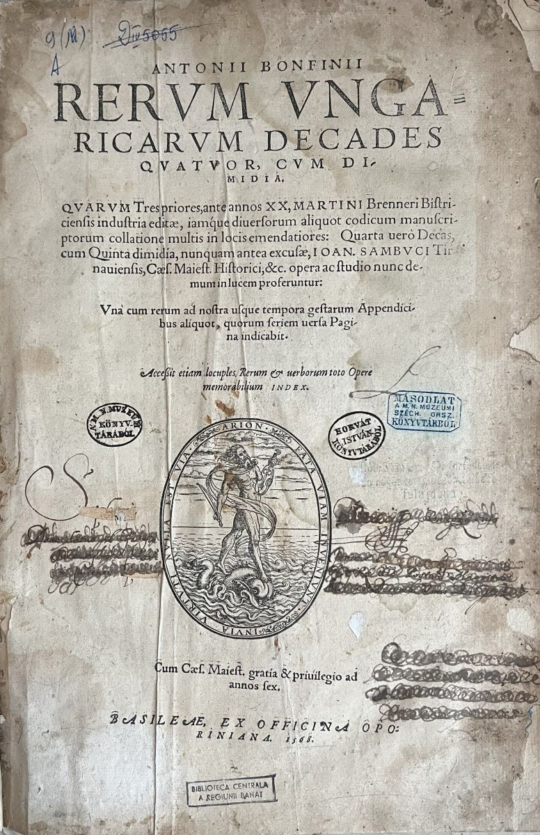 Description: Antonii Bonfinii Rerum Ungaricarum decades quatuor, cum dimidia : Quarum Tres priores, ante annos XX, Martini Brenneri Bistriciensis industria editae, iamque diversorum aliquot codicum manuscriptorum collatione multis in locis emendatiores : Quarta vero Decas, cum Quinta dimidia, nunquam antea excusae, Ioann. Sambuci Tirnaviensis, Caes. Maiest. Historici, &c. opera ac studio nunc demum in lucem proferuntur : Una cum rerum ad nostra usque tempora gestarum Appendicibus aliquot, quorum seriem versa pagina indicabit : Accessit etiam locuples rerum & verborum toto opere memorabilium Index. Cum Caest. Maiest. gratia & privilegio ad annos sex. Basileae, ex officina Oporiniana [per Bartholomaeum Franconem, et Paulum Quecum, sumptibus partim successorum Oporini, partim Sigismundi Feirabent], 1568