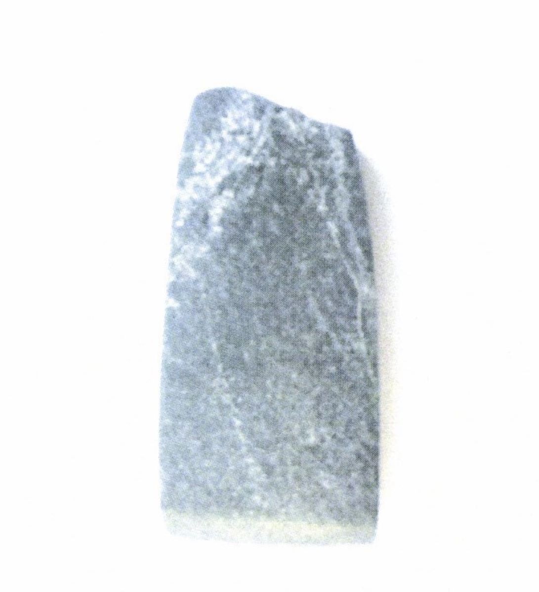 Description: Teslă din jadeit, lucrat prin tăiere și șlefuire. Muchia știrbită din vechime. Nu are urme de folosire.