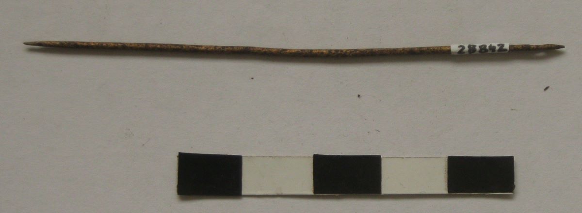 Description: Ac realizat dintr-o sârmă de bronz circulară în secțiune, cu partea activă ascuțită (vârful) și aplatizat în dreptul urechii. Piesa face parte din inventarul unui mormânt de incinerație getic din necropola de la Zimnicea. Descoperit de: colectiv coordonat de prof. Univ. Dr. Mircea Babeș, format din arheologi de la Institutul de Arheologie „Vasile Pârvan” București (Anca Ganciu, Cristina Muja), Muzeul Județean Teleorman (Ecaterina Țânțăreanu, Ionuț Torcică, Tiberiu Nica) și Muzeul Județean Argeș (Dragoș Măndescu).