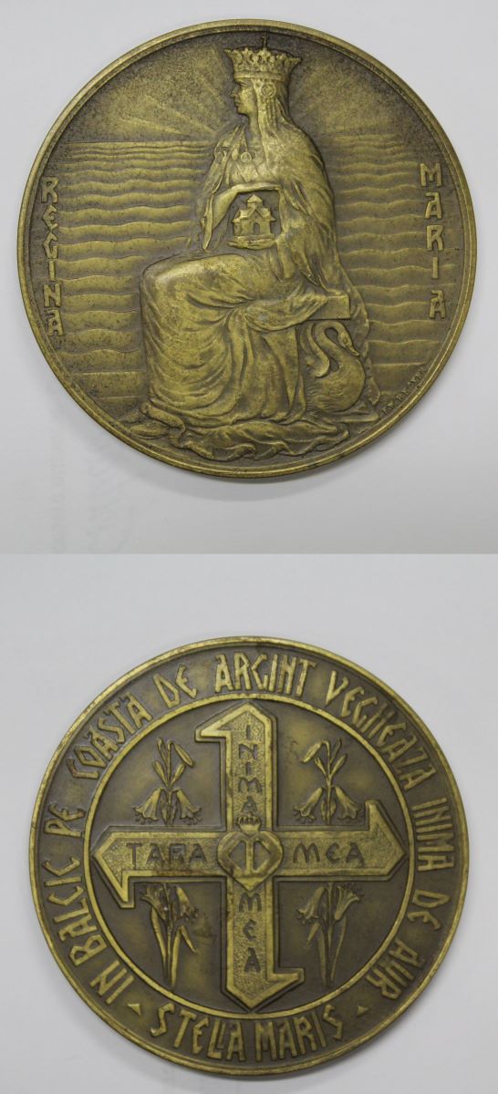 Pe margine legenda circulară IN BALCIC PE COASTA DE ARGINT VEGHEAZA INIMA DE AUR • STELLA MARIS •. În centrul medaliei este o cruce gamată pe brațele căreia este legenda INIMA MEA / TARA MEA, care are în centru o inimă pe care se regăsește monograma încoronată a reginei Maria. Între brațele crucii sunt patru crini.