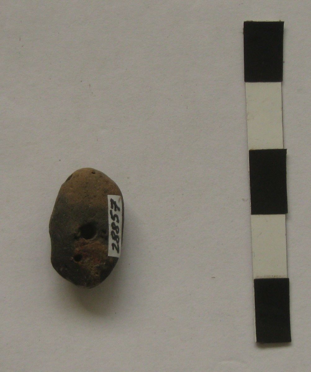 Description: Figurină antropomorfă modelată din lut, redată schematizat, de formă ovală, având doar fața figurată, respectiv nasul printr-o ușoară proeminență și ochii prin două puncte incizate. Partea mediană este străpunsă de o perforație. Piesa face parte din inventarul unui mormânt de incinerație getic din necropola de la Zimnicea. Descoperită de: colectiv coordonat de prof. Univ. Dr. Mircea Babeș, format din arheologi de la Institutul de Arheologie „Vasile Pârvan” București (Anca Ganciu, Cristina Muja), Muzeul Județean Teleorman (Ecaterina Țânțăreanu, Ionuț Torcică, Tiberiu Nica) și Muzeul Județean Argeș (Dragoș Măndescu).