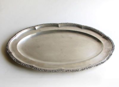 Description: Tavă ovală, cu bordură în acolade, profilate de unb brâu de motive vegetale.