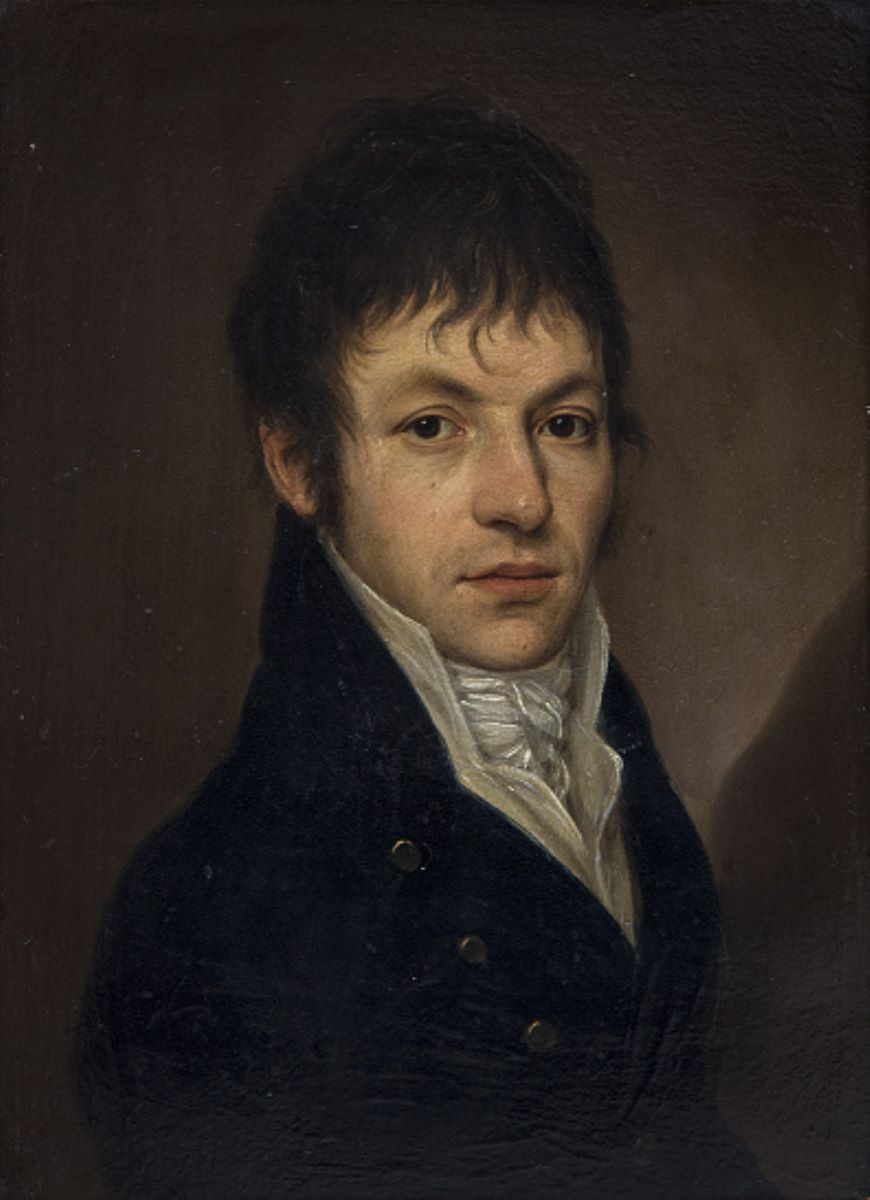 Description: Lucrarea face parte dintr-o serie de cinci portrete de familie (împreună cu PMT 138, 139, 140 și 141), aceasta reprezentându-l pe tată. Bustul bărbatului este redat din semiprofil dreapta, personajul privind frontal. Poartă tunică albă, redingotă neagră, iar gâtul este acoperit de o eșarfă. Fundalul este întunecat în stânga, iar în dreapta, pe o porțiune ușor luminată se vede o parte din umbra bărbatului.