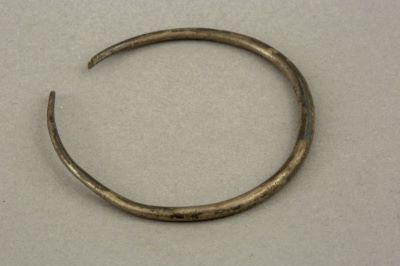 Description: Verigă din sârmă de argint, circulară în secțiune, care se subțiază spre terminații. Terminațiile sunt rupte.
