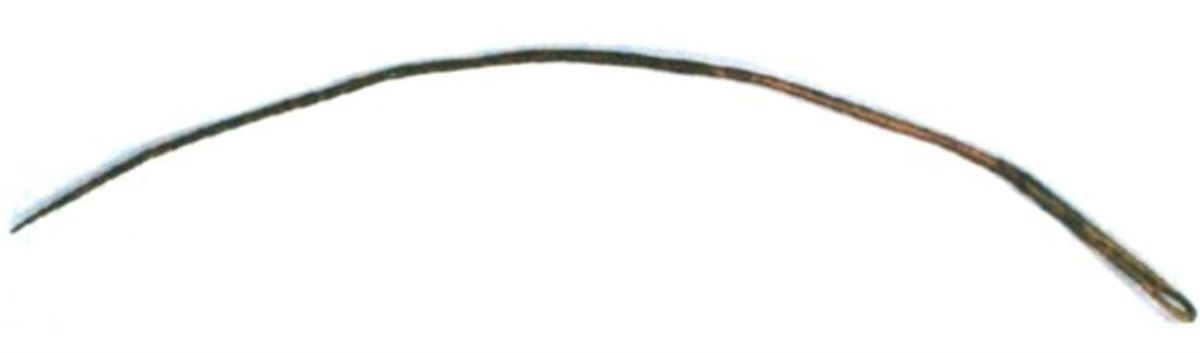 Description: Formă alungită, profil curb, secțiune circulară, unul dintre capete ascuțit, celălat fiind ușor lățit și prevăzut cu ureche.